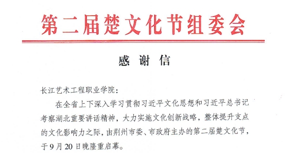 实力圈赞!我校获第二届楚文化节组委会感谢信